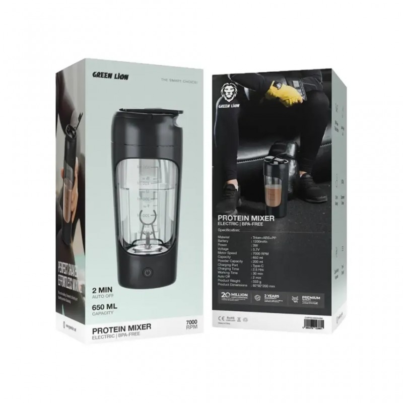 خلاط البروتين المحمول من Green Lion هو الحل المثالي لك! بسعة 650 مل وتصميم أنيق ومتين من مواد Tritan وABS وPP الآمنة، يمنحك هذا الجهاز أداءً قويًا وسهل الاستخدام أينما كنت.