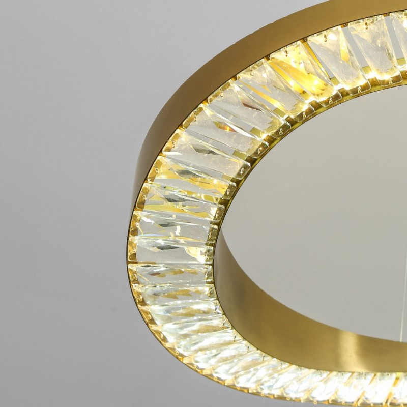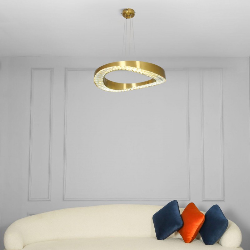 ثريا ليد كريستال دائرية منحنية بطريقة راقية، بتضوي بثلاث ألوان مختلفة ✨💡