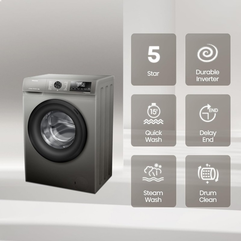 #Hisense #WFQP8012T #غسالة_ملابس #تقنية_البخار #WASHJET #محرك_انفيرتر #كفاءة_طاقة #رمادي_تيتانيوم #أجهزة_منزلية #غسيل_ذكي #راحة_وأناقة