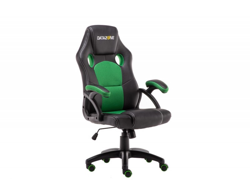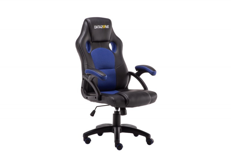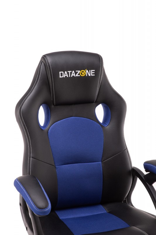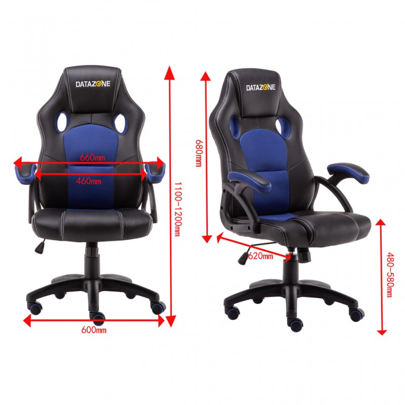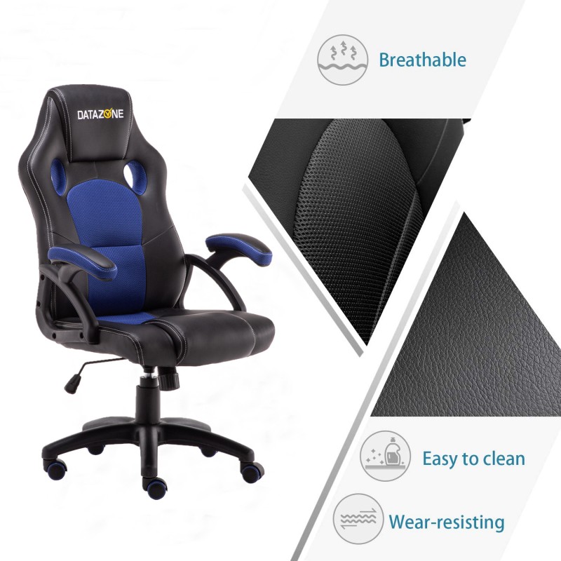 كرسي من داتازون لألعاب الفيديو والعمل المكتبي والجلوس لفترات طويلة، يتميز بتعديل الارتفاع ودوران 360 درجة وشبك تهوية ومساند يد قابلة للطي، مصنوع من الجلد