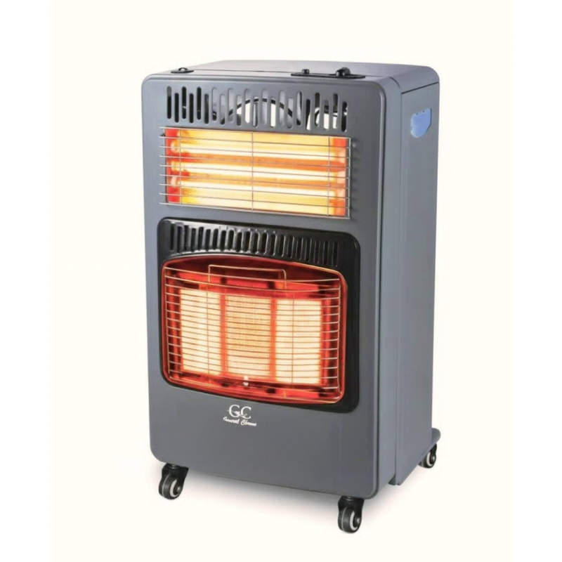 مدفأة GC General Chrome تجمع بين 3 فخارات غاز + 3 شمعات كهرباء لتمنحك تدفئة قوية في أجواء شتوية دافئة. مزودة بعجلات لسهولة النقل، ومثالية لغرف المعيشة والمكاتب.