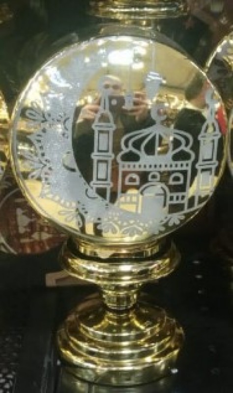 أضيفي لمسة جمال راقية إلى منزلك مع هذا المجسّم الذهبي المزخرف بنقشة مسجد بقبابه ومآذنه، وتفاصيل فنية محفورة بدقة عالية. قطعة تعكس الذوق الرفيع وتناسب ديكور المجالس، المداخل، والمكاتب، كما تُعد هدية مميزة لكل محب للفن الإسلامي.