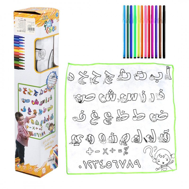 طقم تلوين الحروف العربية 12 قلم ورقعة تلوين قابلة للغسيل