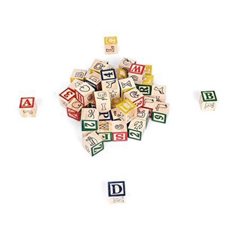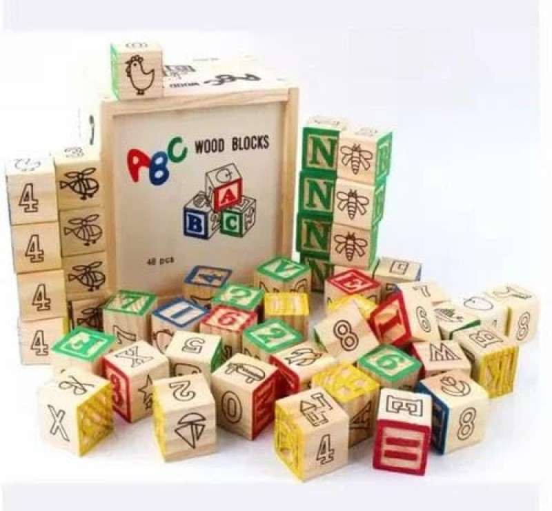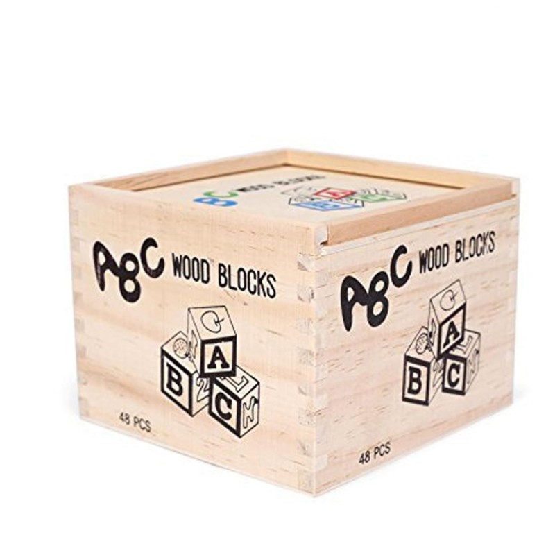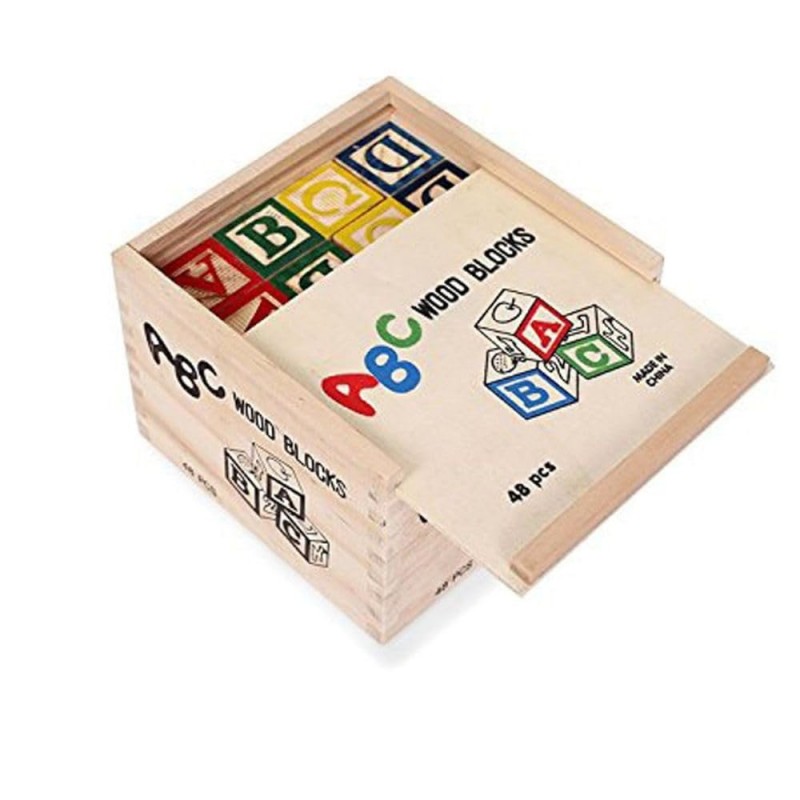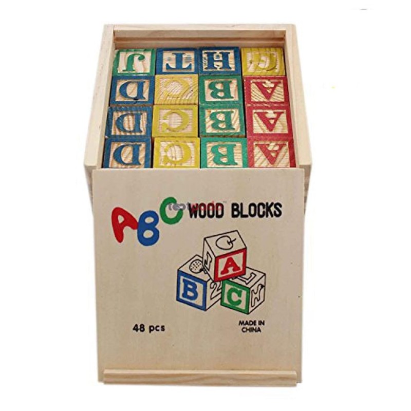 مكعبات الحروف الخشبية التعليمية (48 قطعة) مع صندوق تخزين