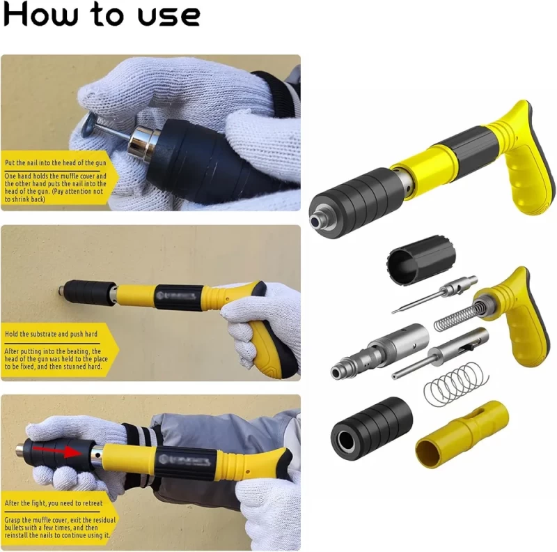 🔫 فرد مسامير كاتم صوت مع علبة 100 مسمار MINI POWDER ACTUATED TOOL SET (RIVET GUN)