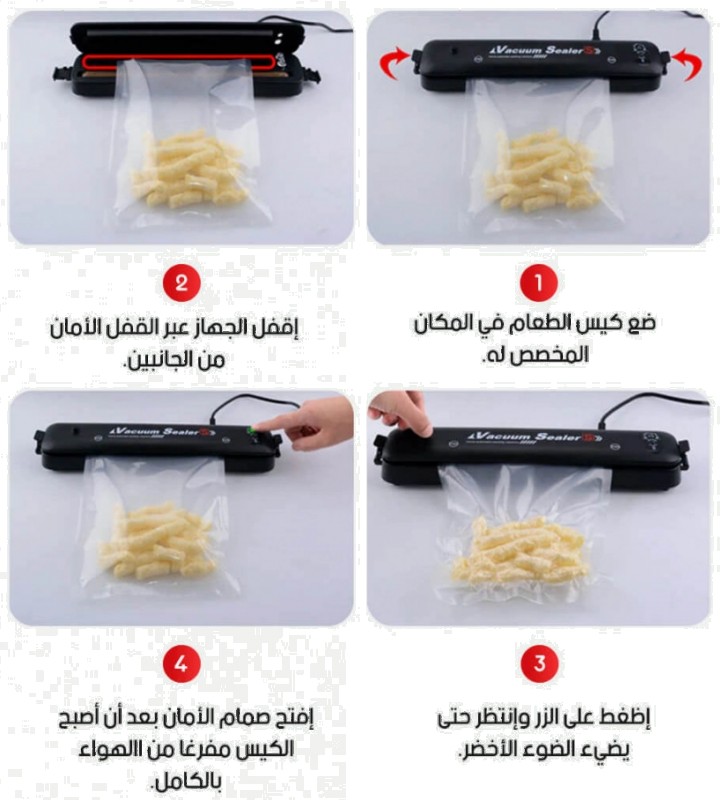 زر يعمل على شفط و تفريغ الهواء داخل الكيس مع غلق الكيس في نفس الوقت.