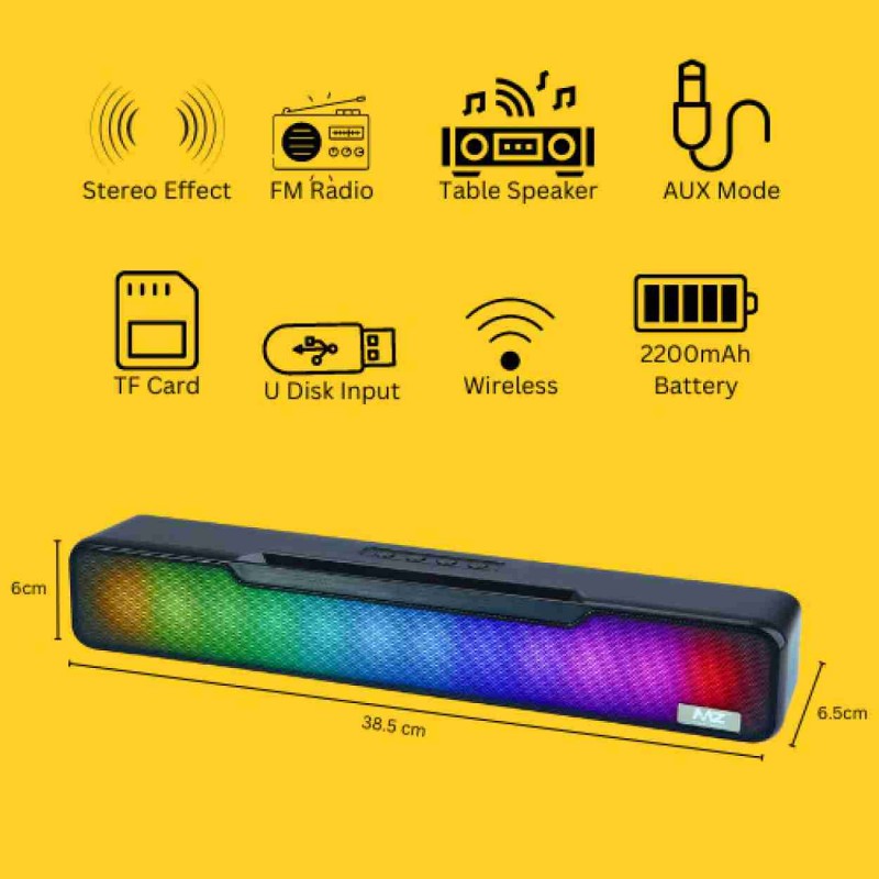 مداخل متعددة 🎧: يدعم تشغيل الموسيقى من مصادر متعددة مثل USB، بطاقة MicroSD، ومقبس AUX، مما يمنحك خيارات واسعة للاستمتاع بموسيقاك المفضلة.