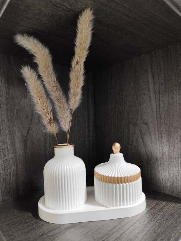 قطعة فنية يدوية تُصنع من خليط بودرة الحجر الايطالي المميز بصلابتة ، يوجد منه قطع مختلفة لإنتاج قطع ديكورية مثل الكوستر، حاملات الشموع، والفازات. تتميز هذه القطع بمظهرها الأنيق والبسيط، ويمكن إضافة لمسات جمالية إليها عبر التلوين أو إضافة تفاصيل بورق دهب او حجر الشوجر تُستخدم لتحسين جماليات الديكورات الداخلية وتُعتبر هدية فنية فريدة.