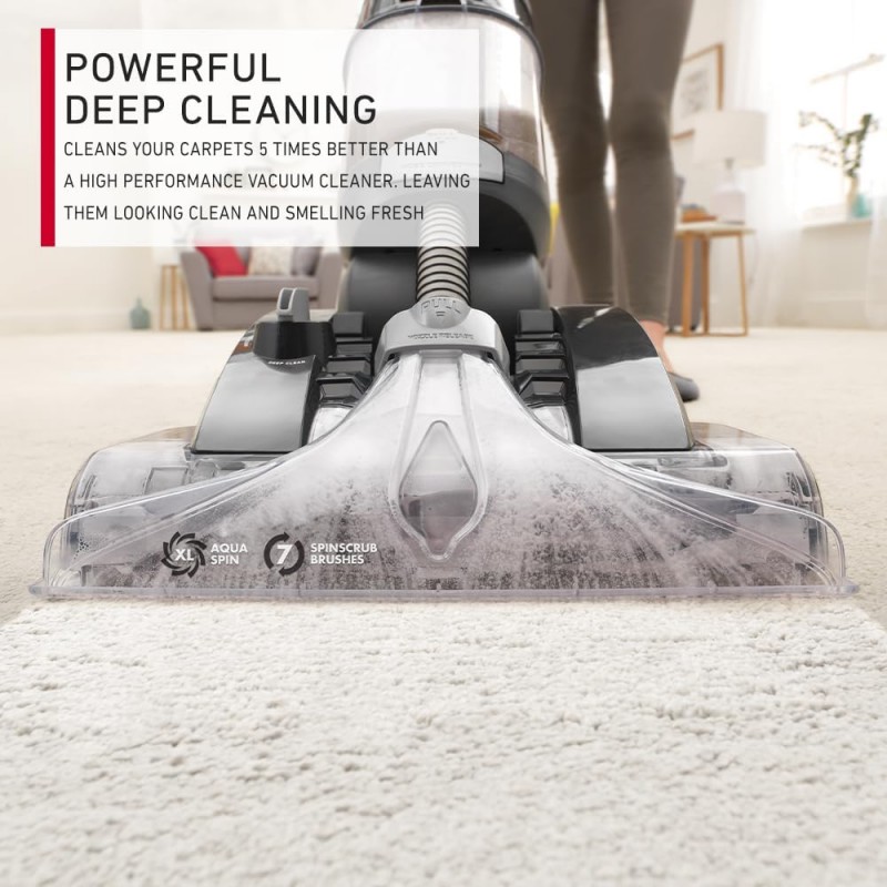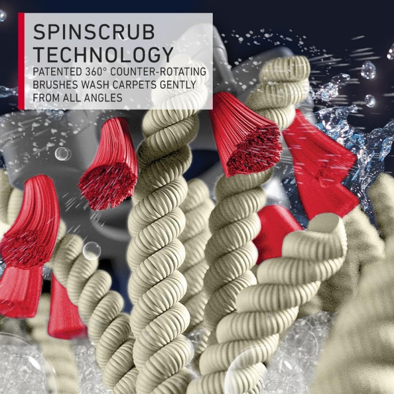 فرشاة XL وتقنية SpinScrub الحصرية من هوفر تعمل على تفكيك ورفع الأوساخ العميقة من داخل ألياف السجاد. - تقنية فرش SpinScrub