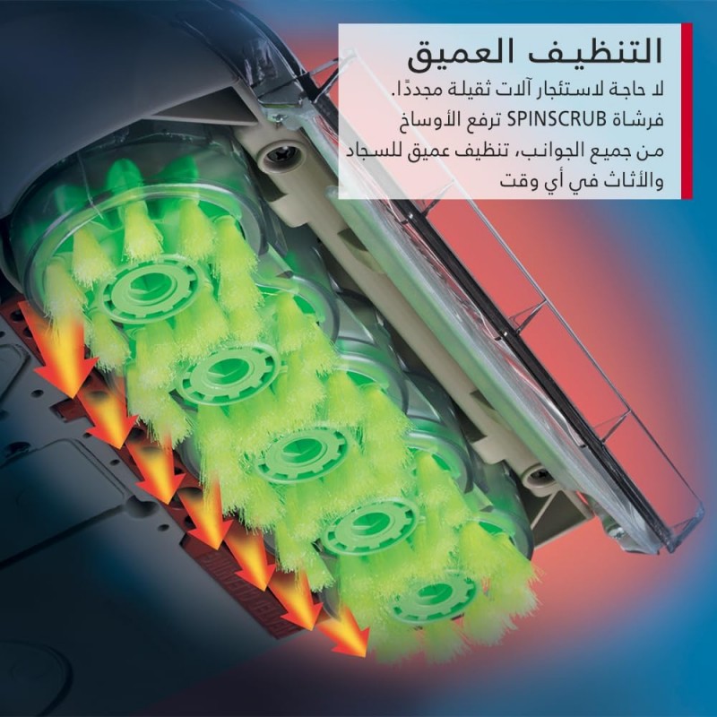 مصمم لغسل السجاد والأرضيات الصلبة باستخدام جهاز واحد لراحة أكبر. - نظام فرشاة SpinScrub