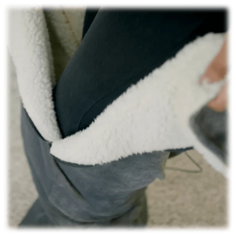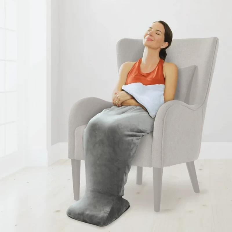 استمتع بالراحة القصوى مع بطانية فاخرة مبطنة بشيربا الناعمة، مزودة بمسند قدم مدفأ ومُدلّك لتدفئة وتهدئة قدميك في نفس الوقت!