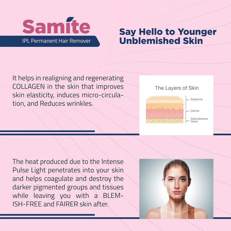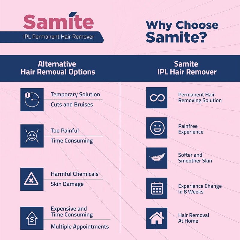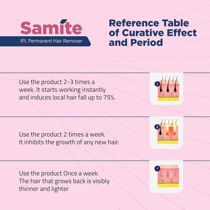 - يعتمد على تقنية الضوء النبضي المكثف IPL لتقليل نمو الشعر تدريجياً ومنع تجدد البصيلات