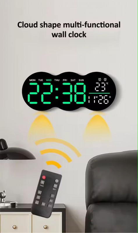 ساعة حائط رقمية بشكل غيمة LED Wall Clock Digital Alarm Clock
