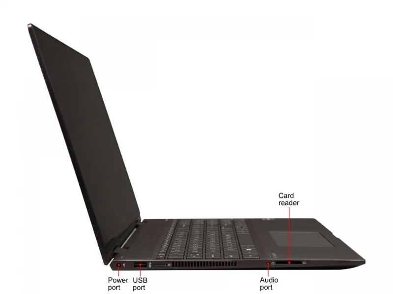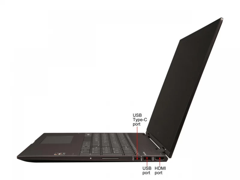 - المنافذ: USB‑C، USB‑A، HDMI، قارئ SD