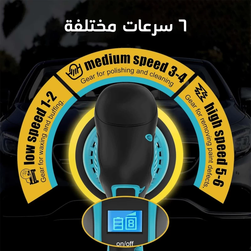 ارتقِ بجودة تلميع سيارتك مع آلة التلميع اللاسلكية Morelian المزودة بـ 8 سرعات لتناسب كل احتياج، من إزالة الصدأ إلى تلميع المعادن والخشب.