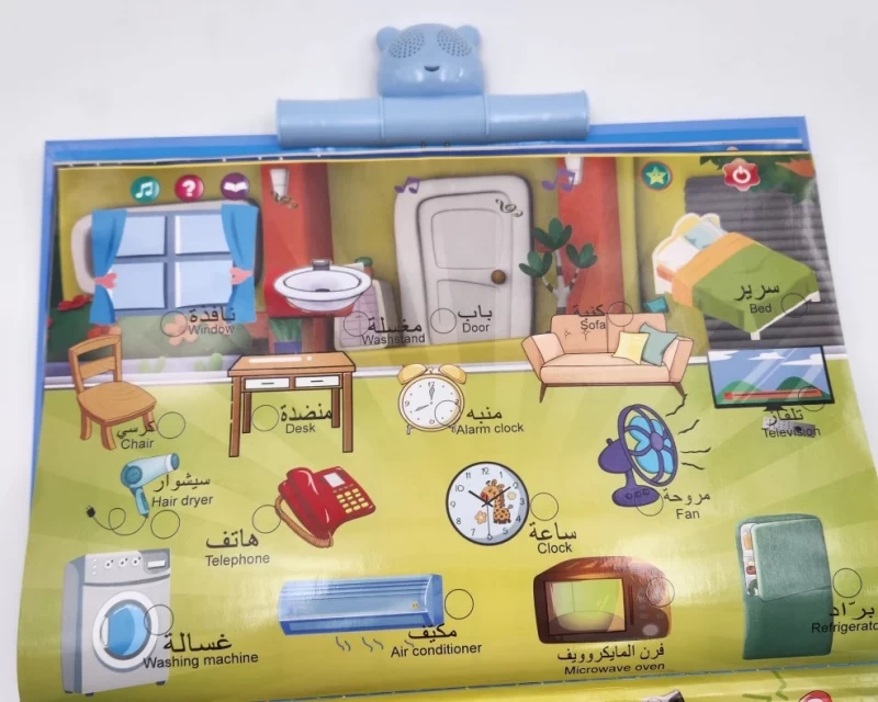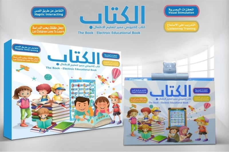 خلي طفلك يتعلّم ويستمتع في نفس الوقت مع كتاب ذكي يجمع بين الصوت، الصورة، اللمس، والتفاعل… تجربة تعليمية متكاملة تنمّي مهاراته من عمر صغير.