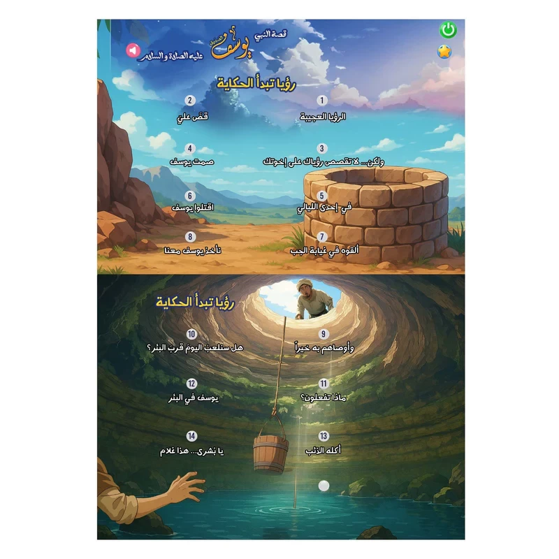 💛 قصة سيدنا يوسف… قصة أمل وصبر وثقة بالله، الآن بين يدي طفلك بطريقة تفاعلية لا تُنسى.