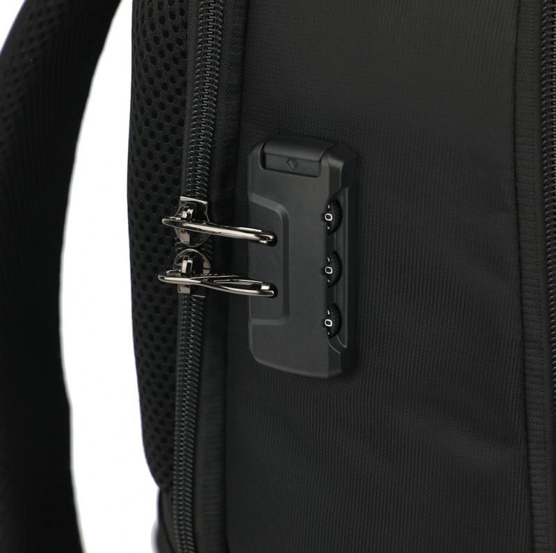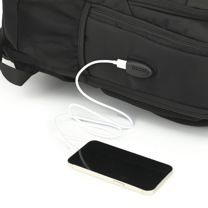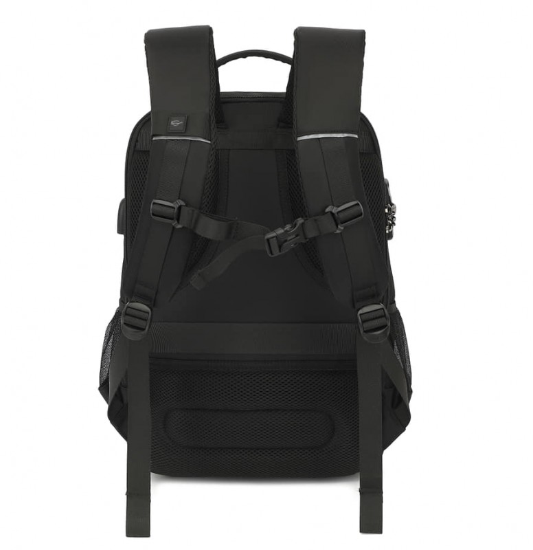 تتميز الحقيبة بقفل أمان مدمج Anti‑Theft Lock لحماية أغراضك أثناء التنقل، بالإضافة إلى منفذ USB للشحن يسهّل عليك شحن هاتفك أثناء الحركة (Power Bank غير مشمول). كما توفر سعة عملية وتنظيم داخلي ذكي لحمل اللابتوب، الكتب، الإكسسوارات، والضروريات اليومية بسهولة.