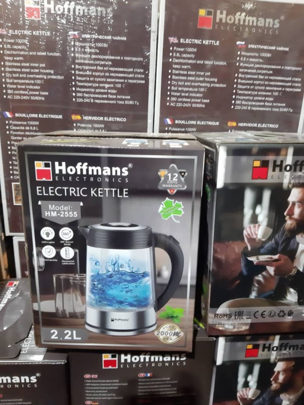 احصل على غلاية تجمع بين القوة، الأمان، والتصميم العصري مع Hoffmans HM‑2555 بسعة 2.2 لتر وقوة 2000 واط، لتغلي الماء بسرعة وكفاءة عالية.