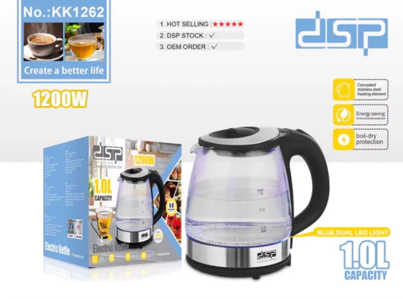 🔵 غلاية DSP KK1262 – غلي هادئ بإضاءة زرقاء أنيقة!